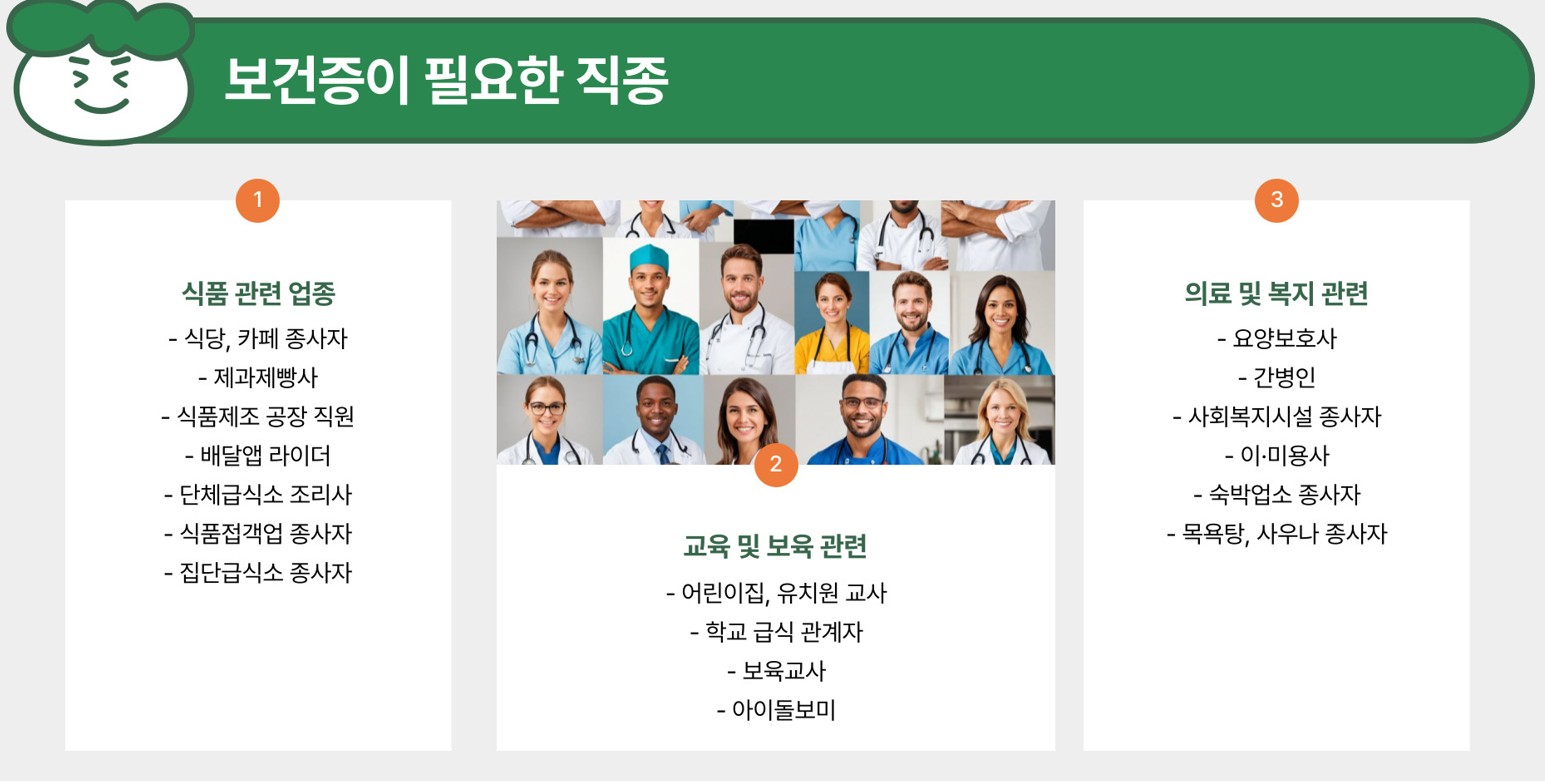 - 기존 보건증만으로는 새 직종에 사용 불가능할 수 있음