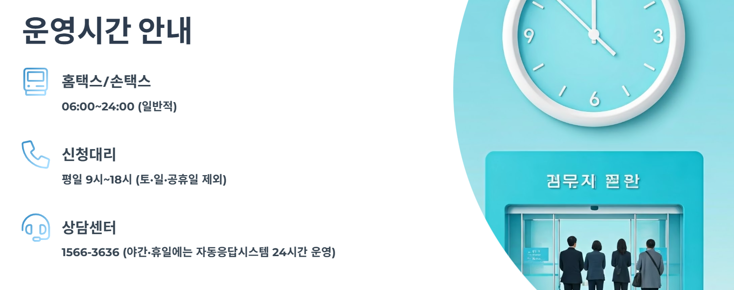 - 홈택스/손택스: 06:00~24:00 (일반적)