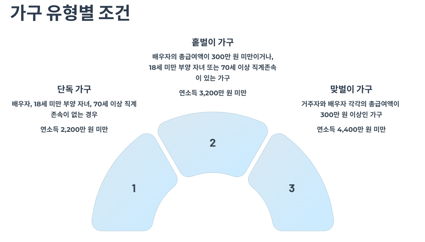 - 가구별 연간 총소득이 기준 금액 이하여야 함