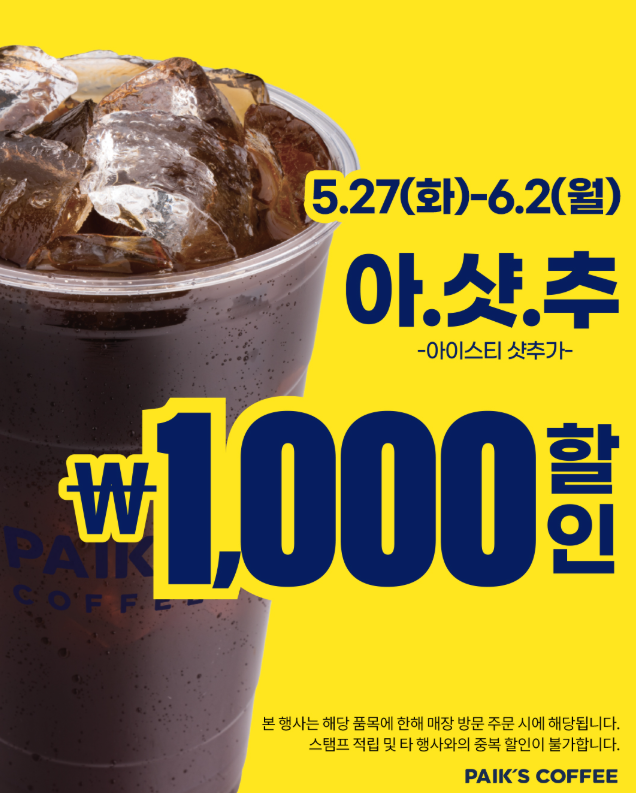 ☑️ 1차 할인 - ‘아샷추’ 1천 원 할인! (5.27~6.2)