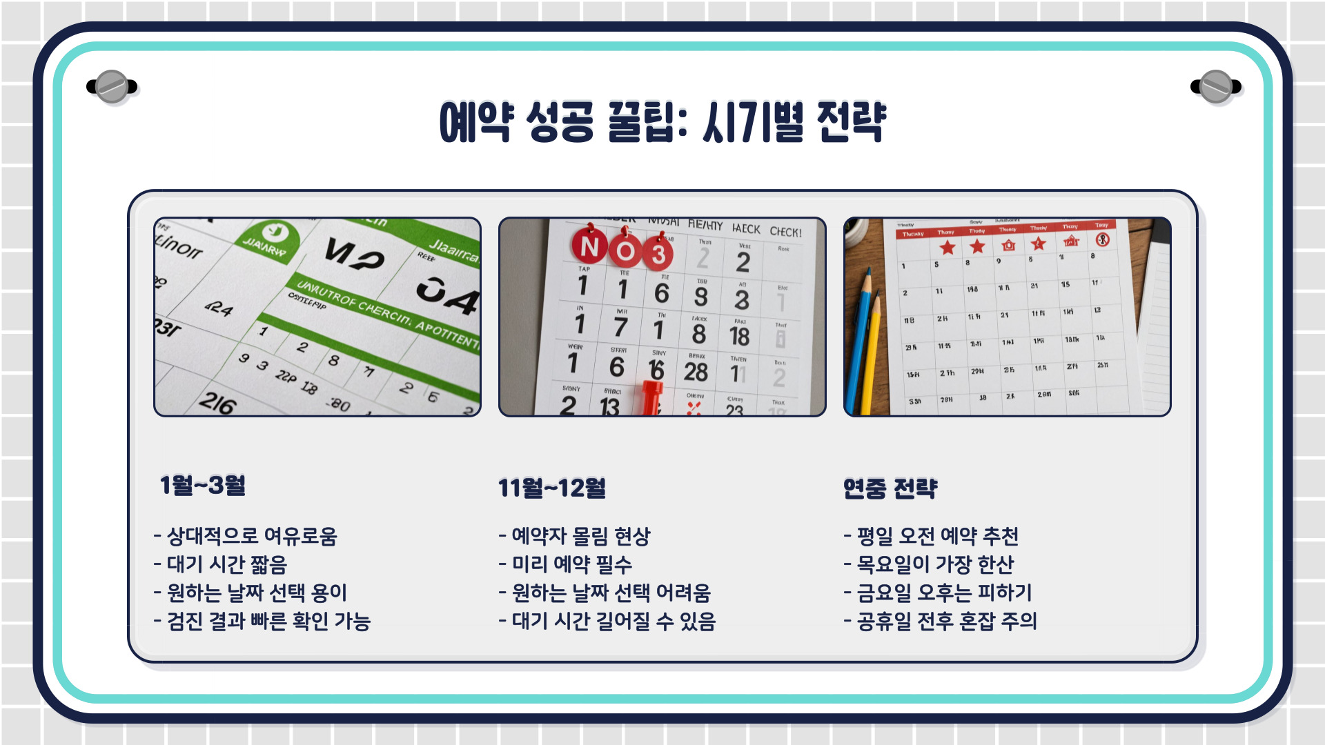 - 여유 시간 확보: 검진 후 결과 상담을 위해 시간 여유 두기