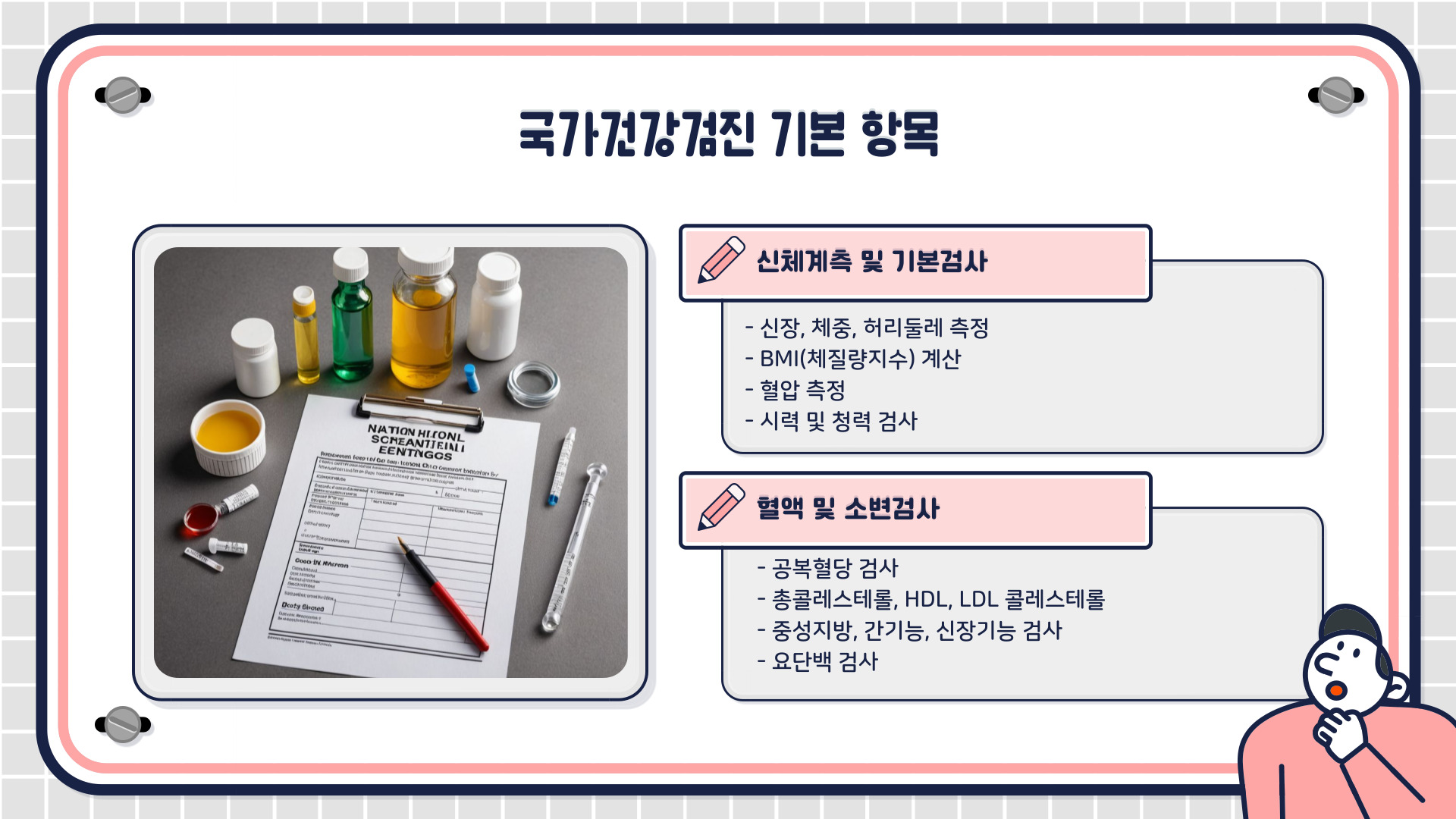 국가건강검진 항목은 연령과 성별, 과거 건강 이력에 따라 달라집니다.