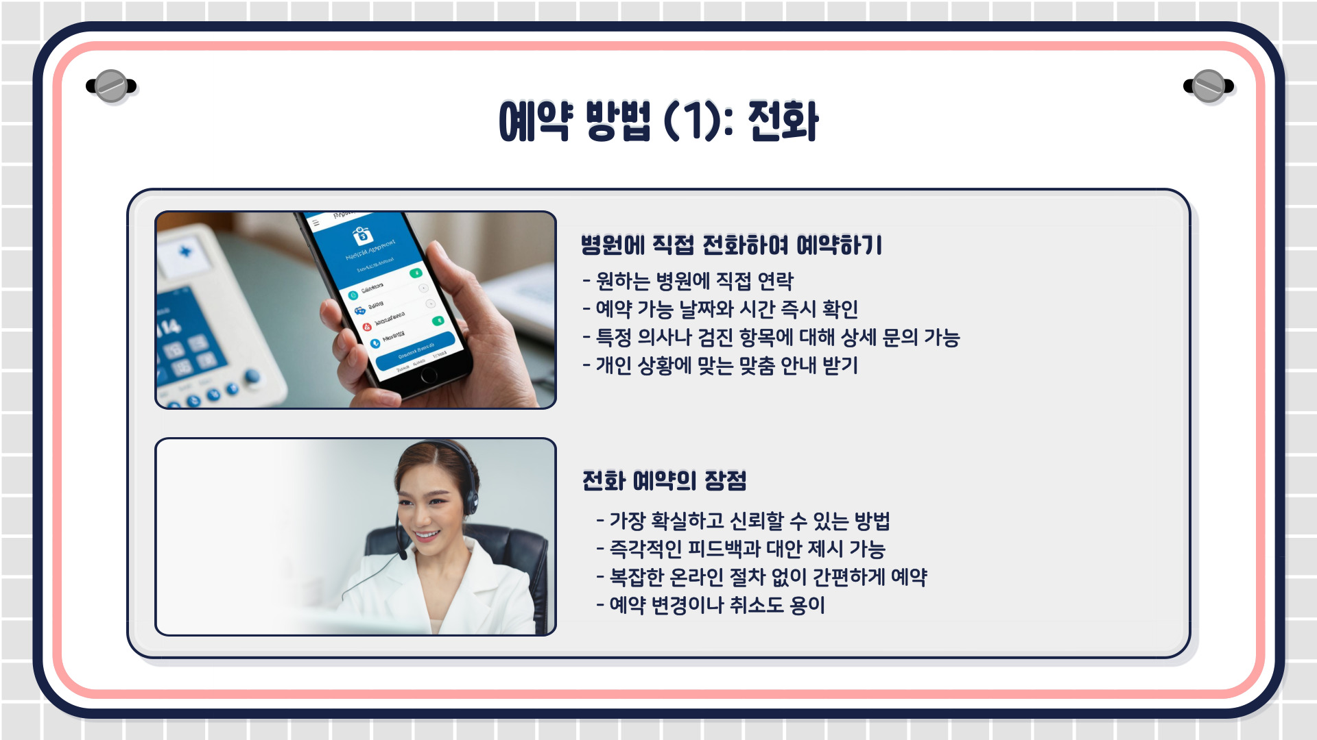 1.병원에 직접 전화하여 예약 (가장 확실한 방법)