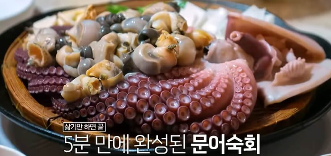 배우 김성균, 전현무, 곽튜브가 함께한 삼척 동해안 먹방 여행에서 부드럽고 신선한 문어숙회 전문점이 소개되었습니다. 통째로 나오는 쫄깃한 문어와 통골뱅이, 뜨끈한 수제비까지 조화로웠던 삼척의 진짜 맛을 만나보세요.