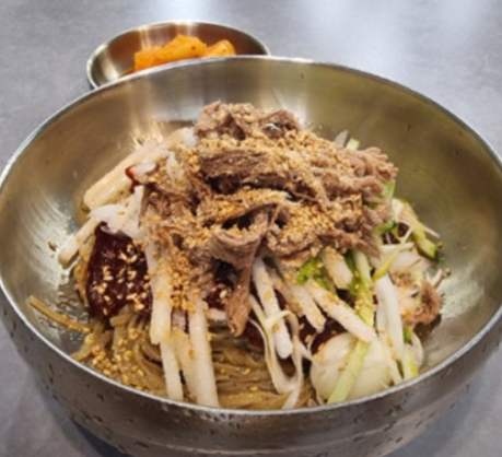 일반 메밀국수집과 달리 수육 대신 소고기 장조림을 고명으로 올려줍니다. 일주일간 정성스럽게 조린 장조림이 메밀국수의 담백한 맛과 잘 어울립니다.