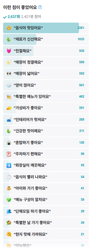 - 평일 오후 2-4시: 대기 없이 편안하게 식사 가능