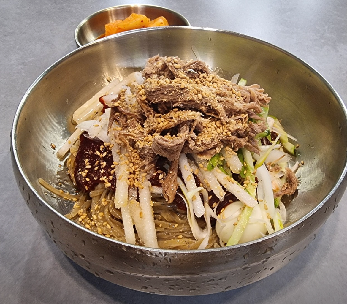 일반 메밀국수집과 달리 수육 대신 소고기 장조림을 고명으로 올려줍니다. 일주일간 정성스럽게 조린 장조림이 메밀국수의 담백한 맛과 잘 어울립니다.
