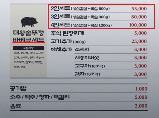 • 무한리필 구성: 고기류, 소시지, 버섯, 각종 밑반찬, 쌈채소