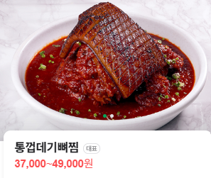 | 뼈찜(통껍데기) | 껍데기의 쫄깃함과 등뼈의 부드러움이 매콤달콤한 양념과 어우러진 시그니처 찜요리 | 사이즈별 문의 |