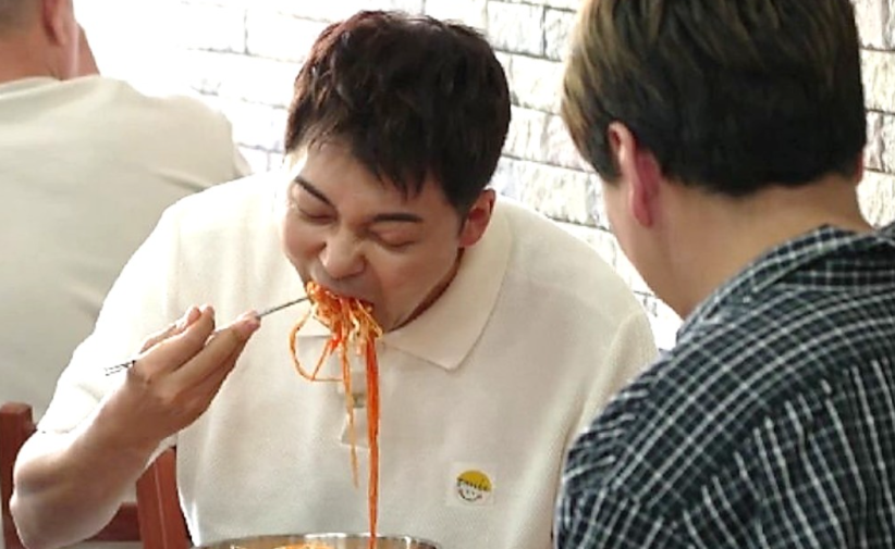 바로 바삭한 고로케 위에 매콤새콤한 쫄면을 올려 먹는 인생 조합!