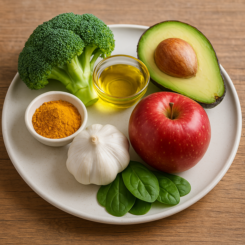 - ① 브로콜리: 항산화 성분이 풍부하고 해독 효소 활성화에 도움
