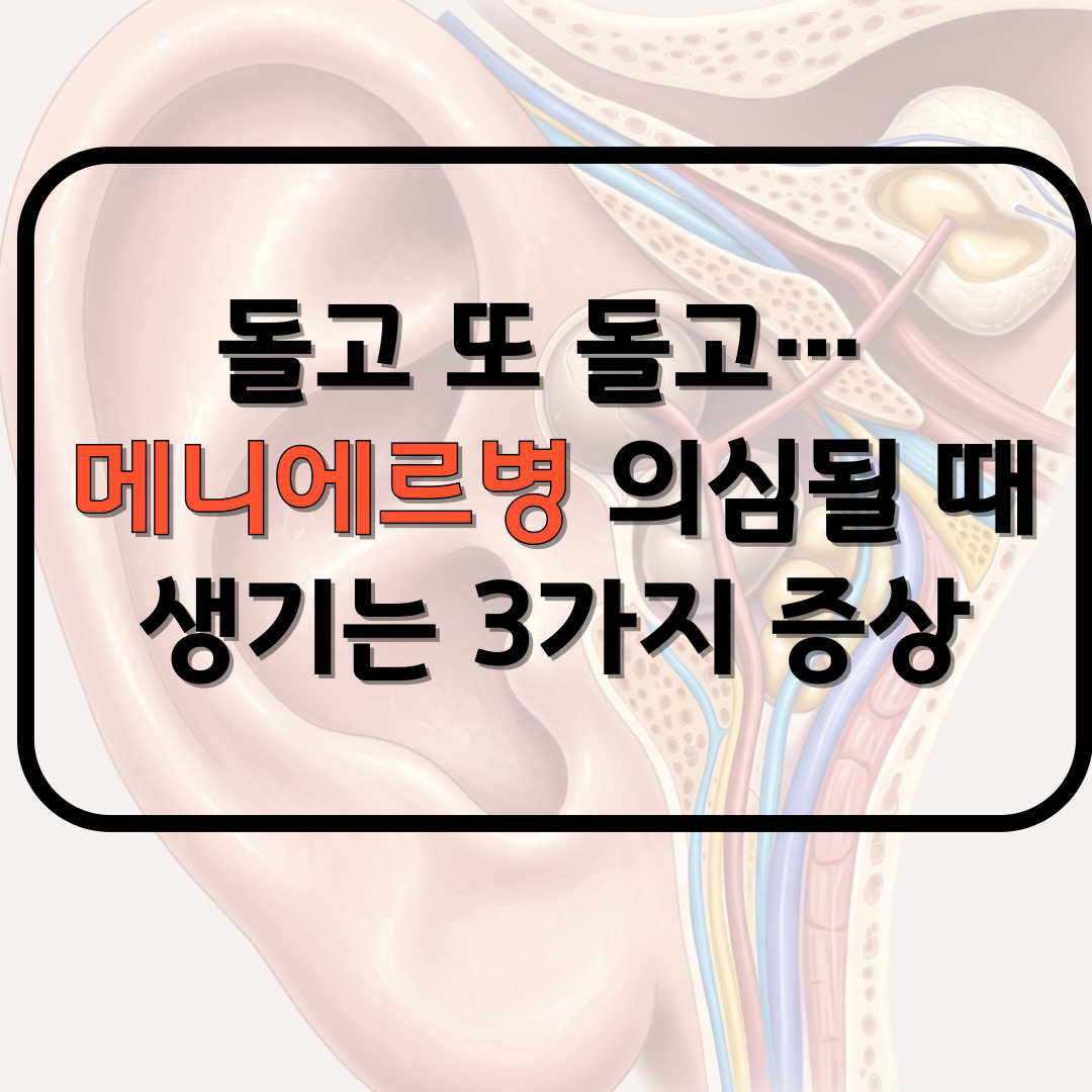 최근 몇 달 사이에 갑자기 어지럽고, 귀에서 이상한 소리가 들리며, 대화 중 소리를 제대로 듣지 못하는 순간이 잦아졌다면 꼭 이 글을 끝까지 읽어주세요. 이런 증상들이 반복된다면 단순한 피로나 스트레스가 아니라 '메니에르병'일 수 있습니다. 간호사로 일하며 환자분들의 이야기 속에서 자주 접하게 되는 이 병은 생각보다 흔하게 나타나고, 조기 대응이 매우 중요합니다. 오늘은 '메니에르병이 의심될 때 알아차릴 수 있는 대표 증상 3가지'를 자세히 소개하겠습니다.